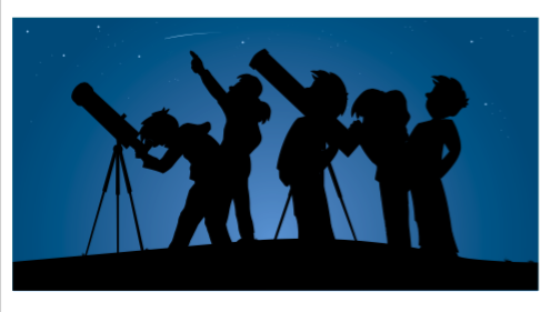 There is always a picture to illustrate the context. Here, we can see some children pointing to and looking at the night sky.