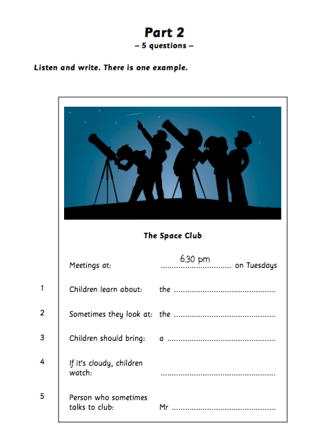 A2 Flyers Listening Part 2 is often about an event (a trip, holiday, visit) or a competition or a club, as we have in this example.