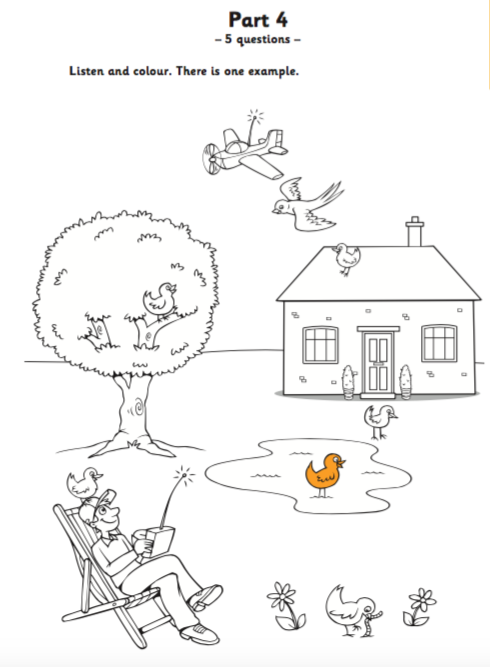 We know that candidates will have to listen and colour five more birds in the picture.