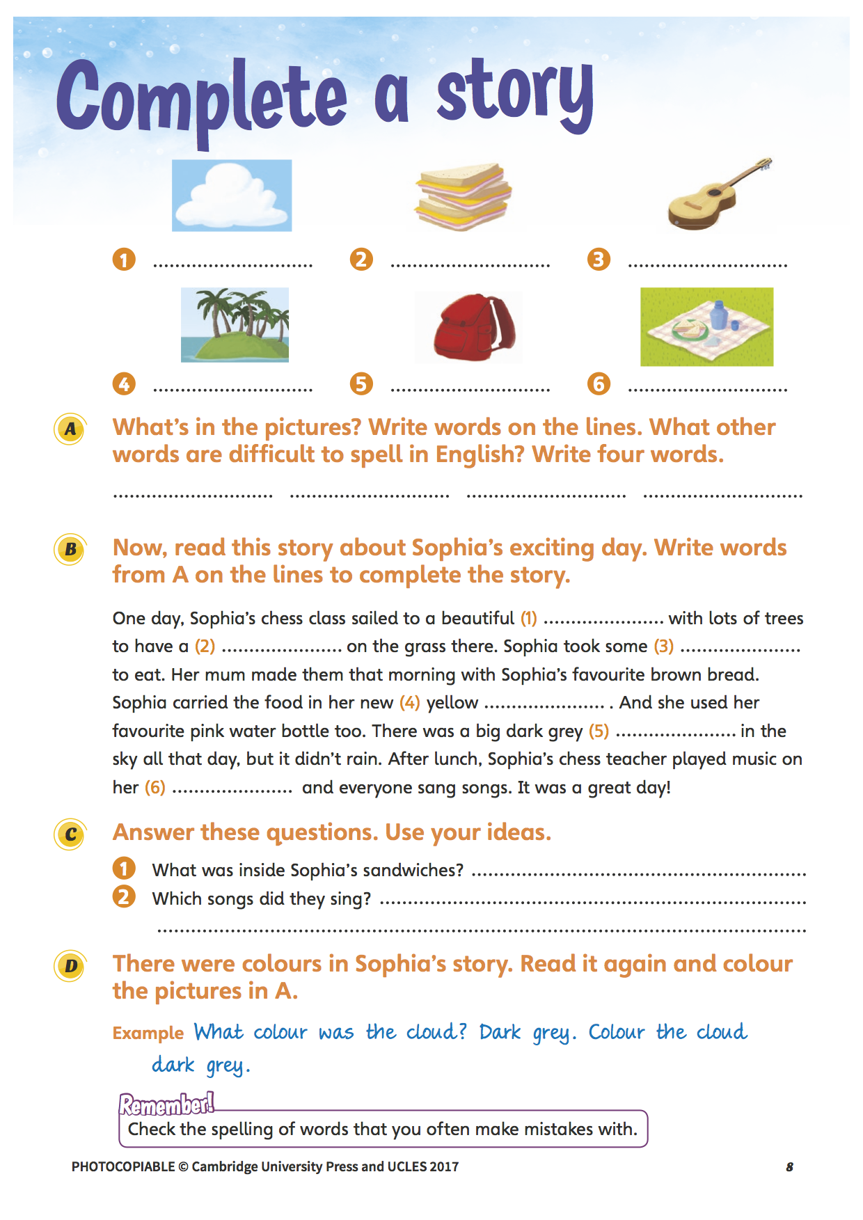 Let’s look at page 7 of the Flyers Writing Skills BookletComplete a story.