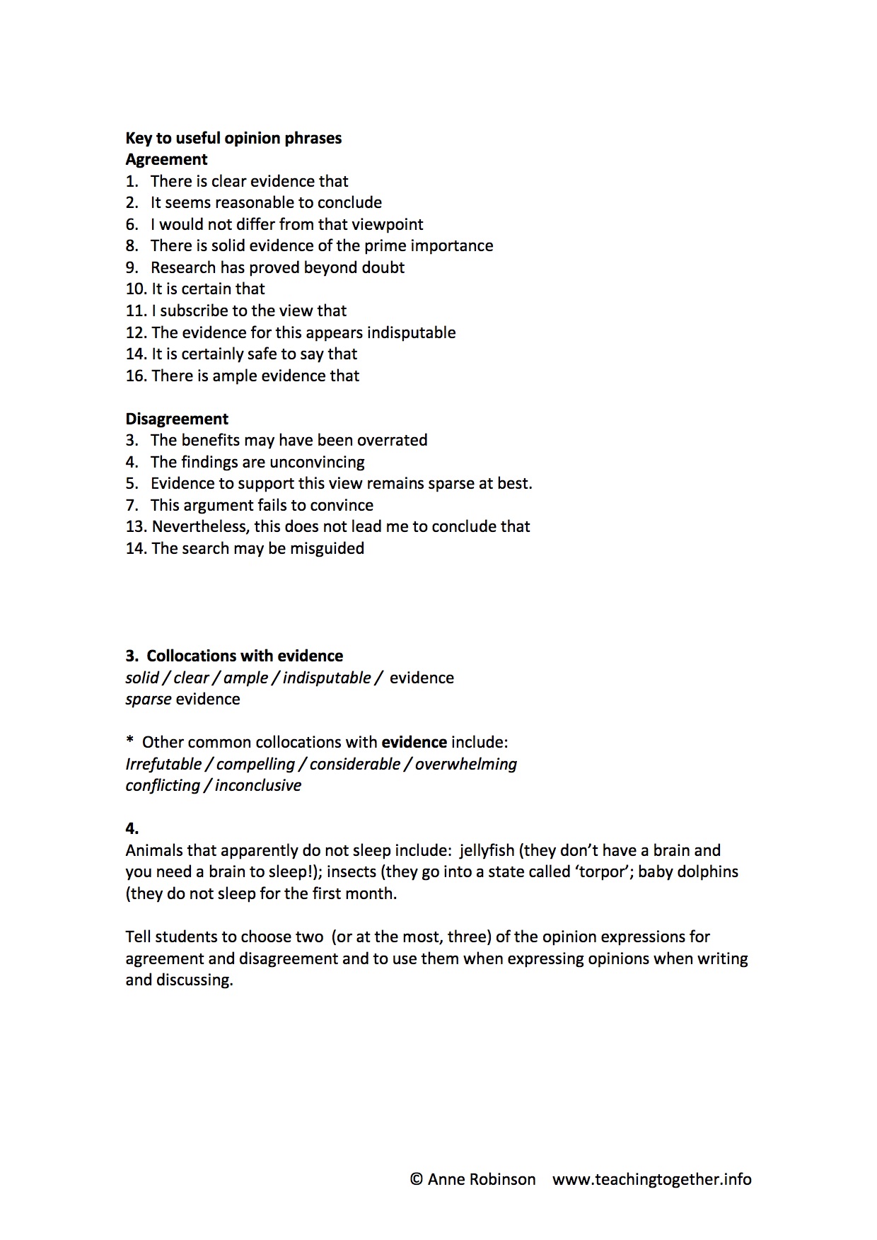I’ve prepared a downloadable pdf document with some steps to work on these phrases and also on collocation with evidence.