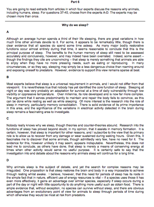 Further work on C1 Advanced Reading Part 6 Why do we sleep texts