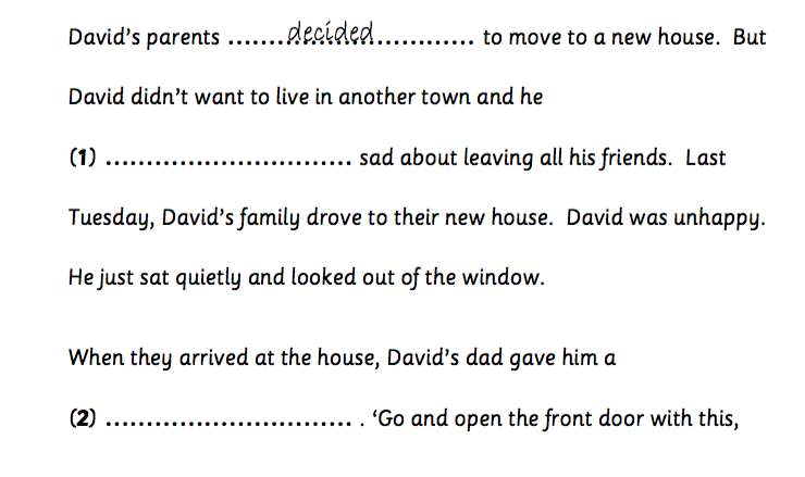 David didn’t want to live in another town and he (1) ……. sad about leaving all his friends.