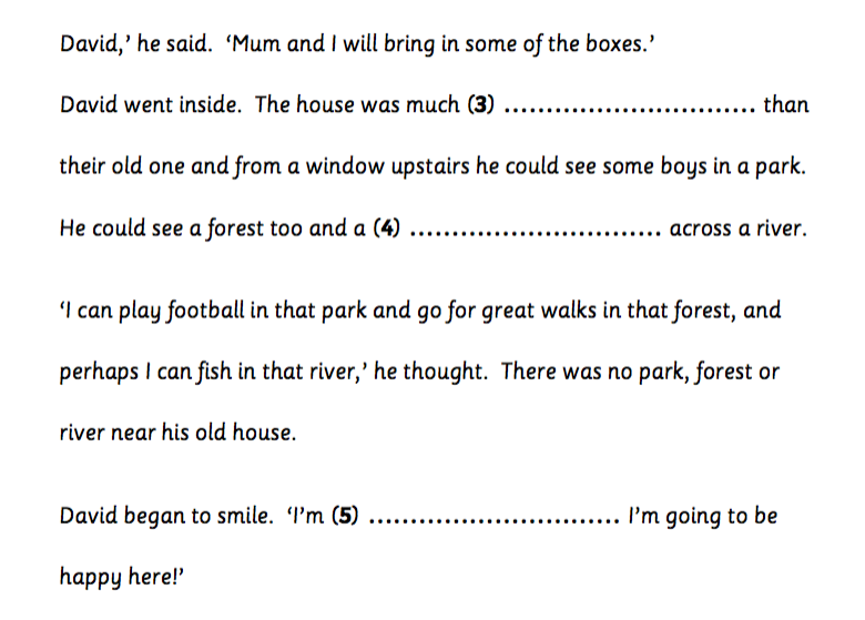 David began to smile. ‘I’m (5) …………. I’m going to be happy here.’