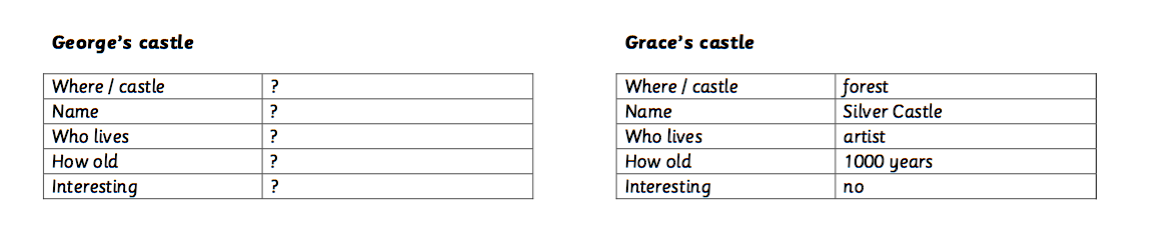 In this example, the final question in the table is: Is the castle interesting.
