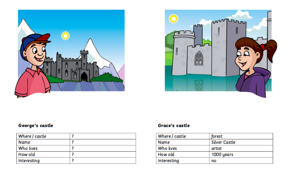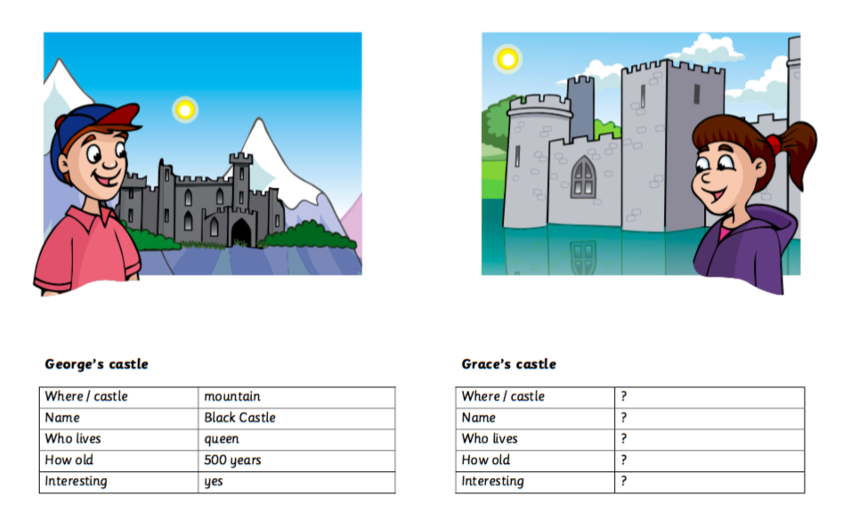 In the example, we can see that there are four Wh- questions. (Where is the castle? What’s the name of the castle? Who lives in the castle? How old is the castle?)
