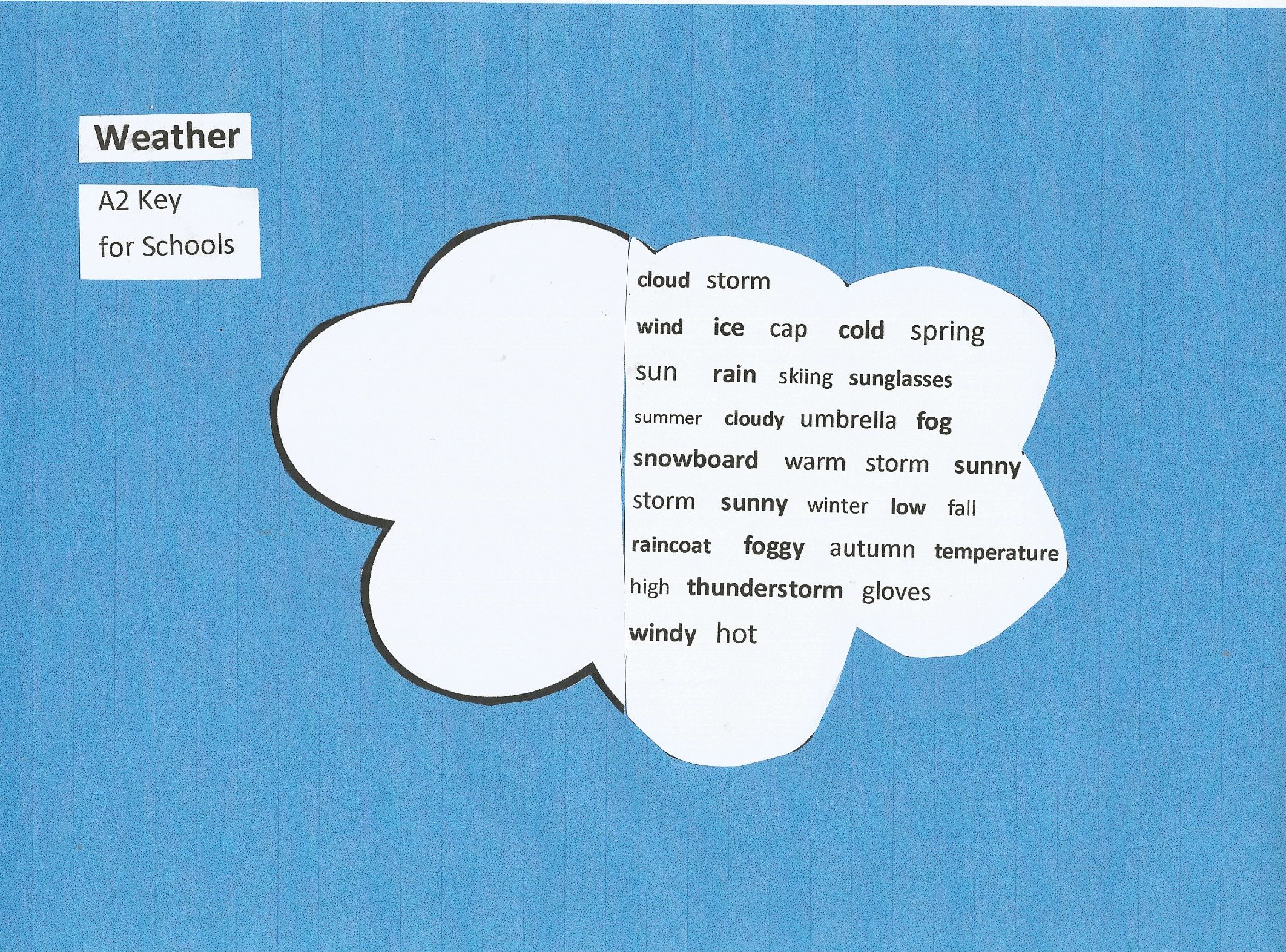 Inspired by the posters, I decided to create my own posters for A2 Key and A2 Key for Schools, on the topic of weather.