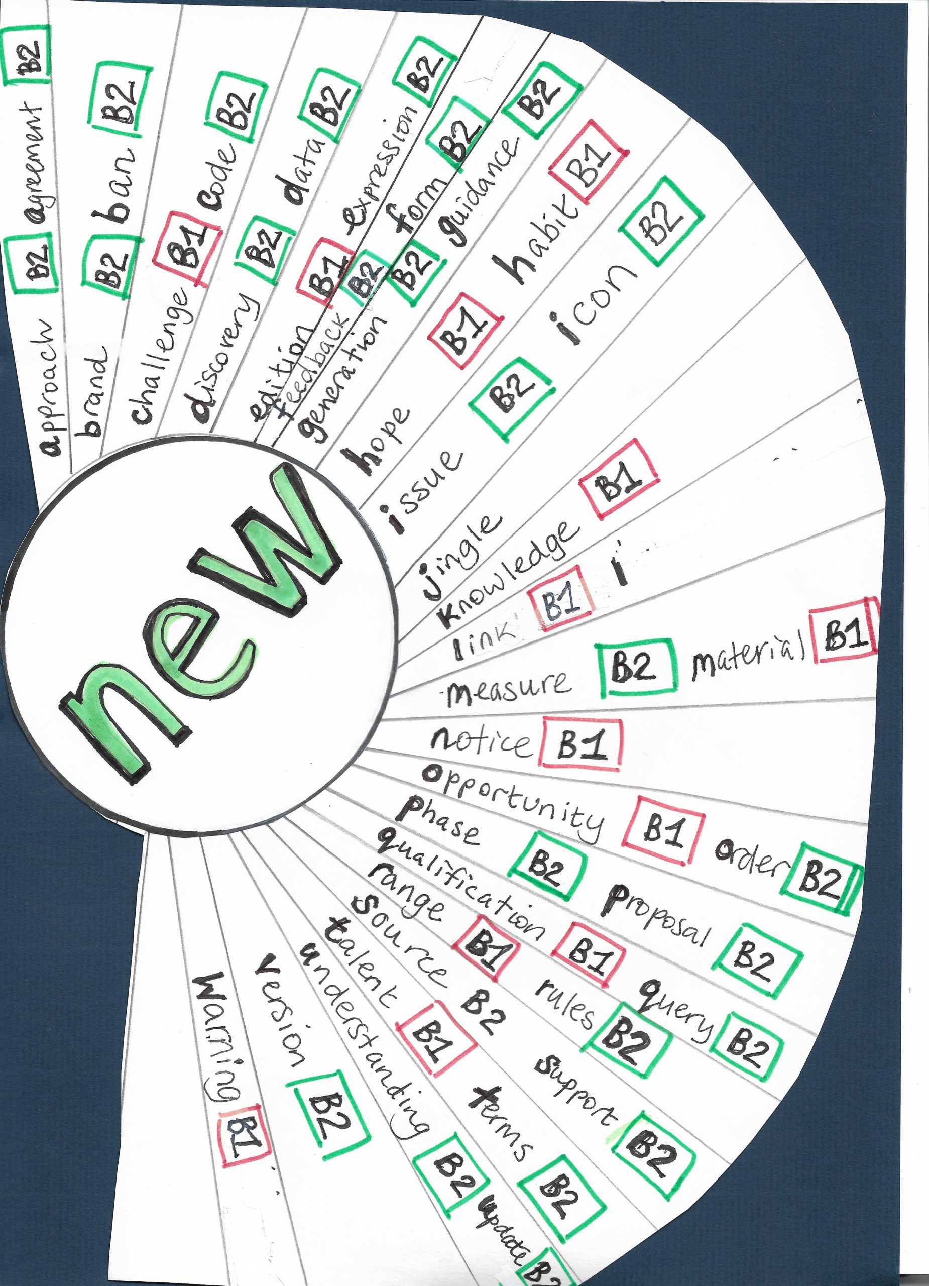 I’ve created a fan with words that collocate with ‘new’ and are listed at B1 and B2 level. You could give students this fan.