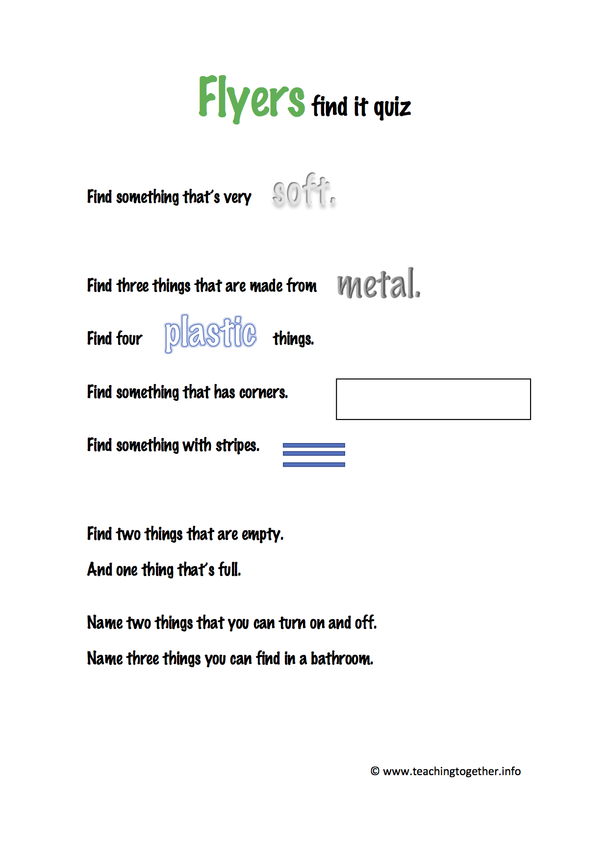 And for the Flyers Find it quiz!, learners could show their classmates things for one of the materials.