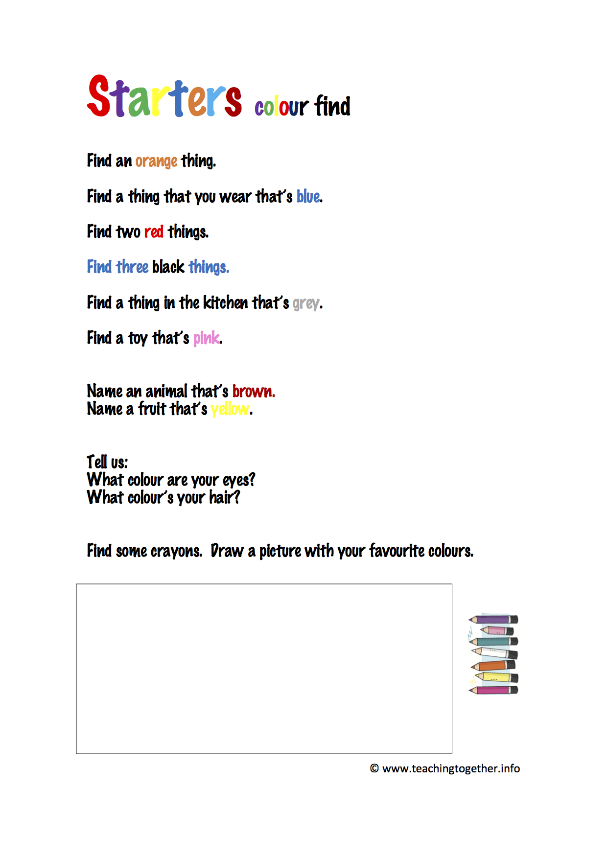 For the Starters Find it!, I’ve based the things they have to find on colours.