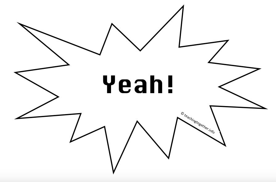 And I’ve created some “shout outs” for you to download and make your own. You can also edit them to make more, with other words like: Cool! Fantastic! Excellent! OK! Great! Amazing! Right!